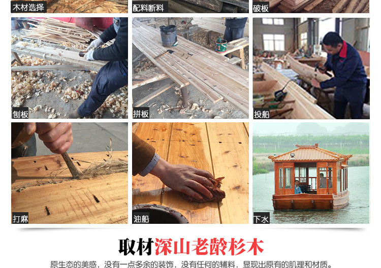 山东济南小渔船手工乌篷船画舫船捕鱼船钓鱼船手划船木