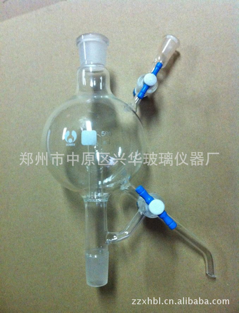 此装置采用标准四氟节门,可任意互配,下口上方有一横支管支持支臂使之稳固。 此装置用于实验室绝对溶剂的制备,配套标准磨口规格齐全。