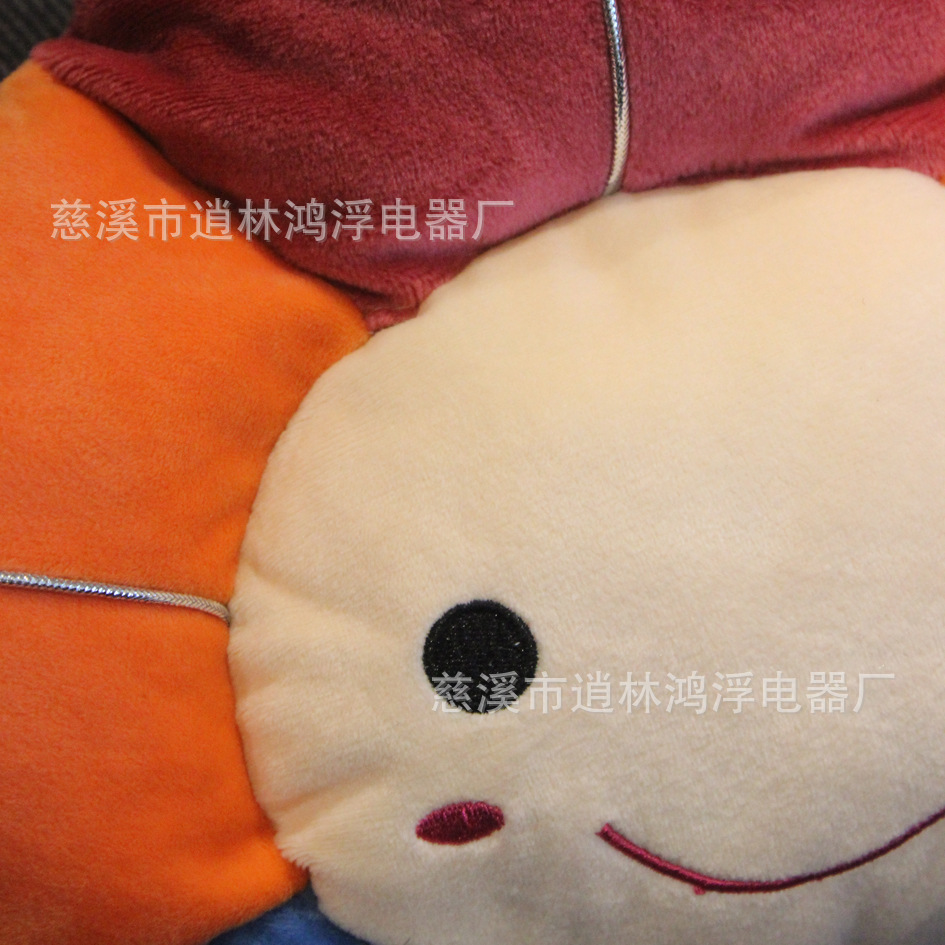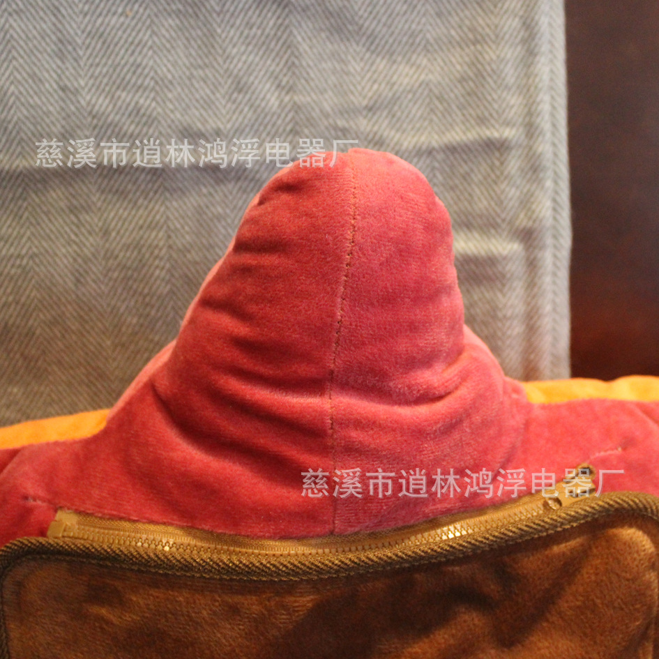 4)通电:划开电源盖.将电源线插头插入电源线插孔上.在接通电源.正常通电8-15分钟.但以手感舒适度为佳.备注:1.先将电源线插孔插入水袋的插孔上再接通电源.2.充电结束后应先拔去外接电源.再分离电源线插头与水袋.