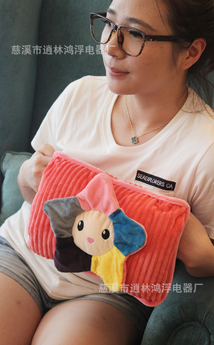 4)通电:划开电源盖.将电源线插头插入电源线插孔上.在接通电源.正常通电8-15分钟.但以手感舒适度为佳.备注:1.先将电源线插孔插入水袋的插孔上再接通电源.2.充电结束后应先拔去外接电源.再分离电源线插头与水袋.