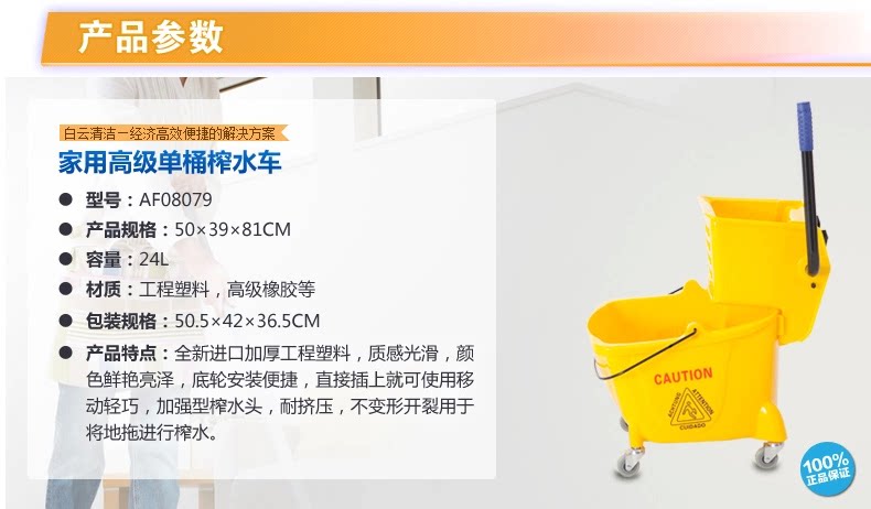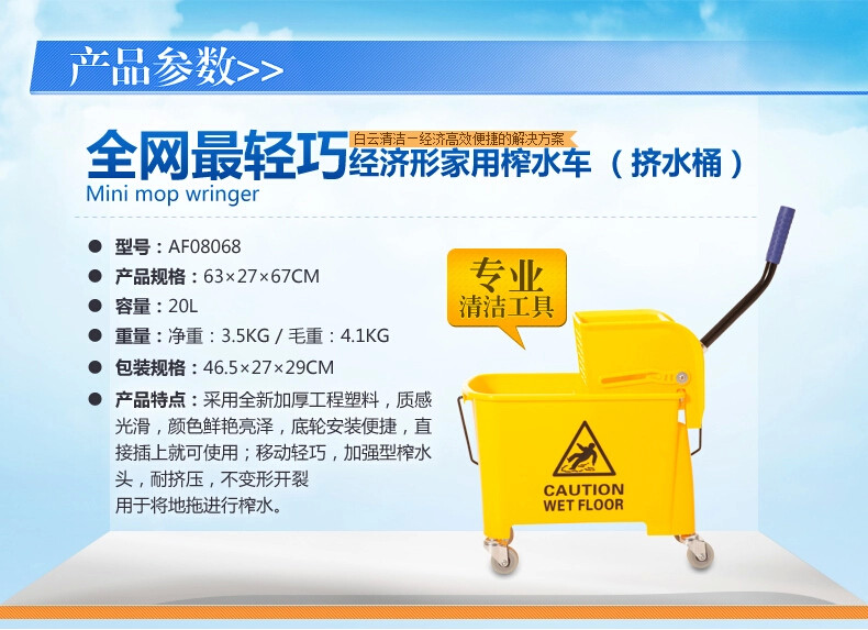 白云双桶榨水车拖把挤水桶酒店物业保洁用品甩水清洁