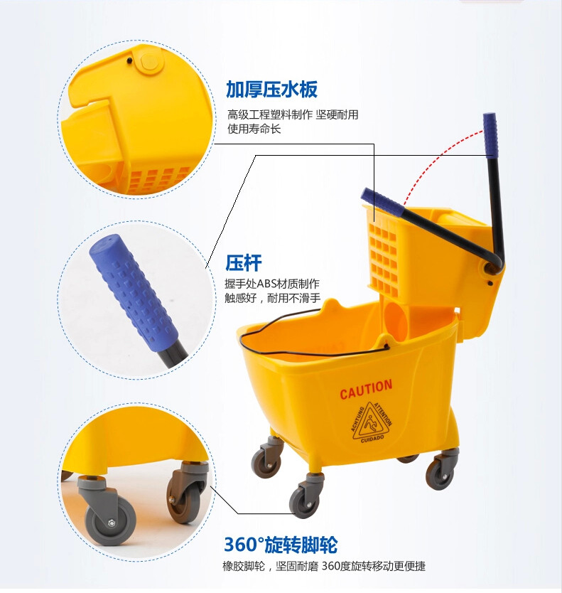 轻巧型单桶榨水车20L侧压式拖把桶旋转酒店保洁挤水桶