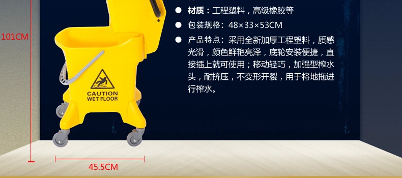 单桶柞水清洁车 干布车洗墩布桶拖把压水车保洁挤水桶