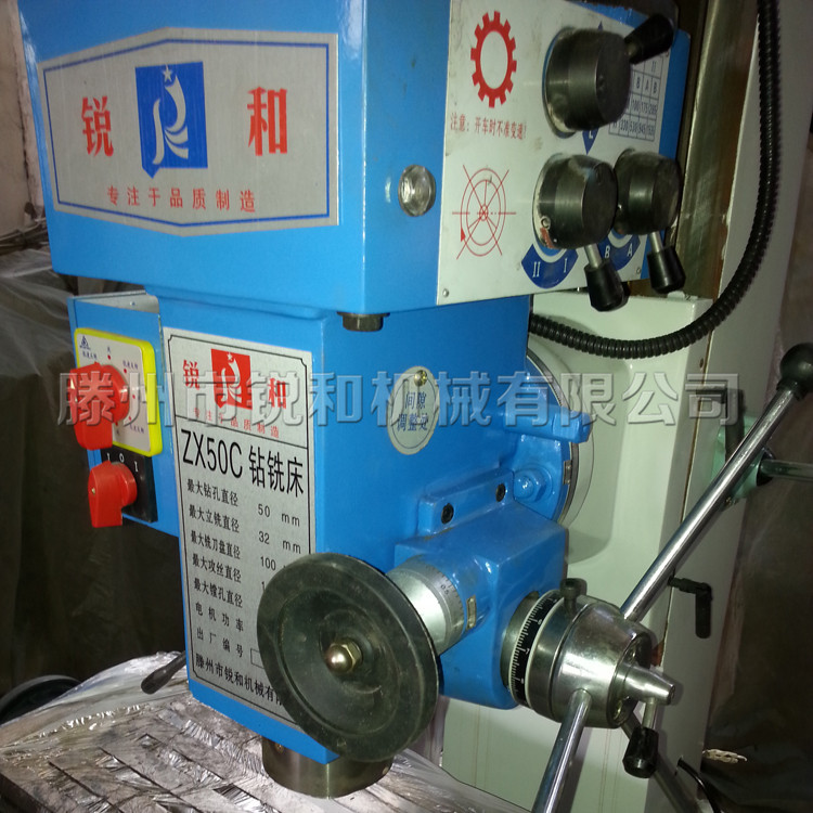 ZX50C钻铣床外观造型美观大方总体布局匀称协调.导轨面经热处理硬度高,钢性强,齿轮为磨齿经高频淬火调质噪音低经久耐用。电控部分采用纯铜电机及国家3c认证产品,安全稳定寿命长,本机床可以用来钻孔、扩孔、铰孔、攻丝及修刮端面等多种形式的加工广泛用于大中小型企业,乡镇和个体工业的机械加工,及各类机器制造业中加工中小型零件,也适用于修理车间。