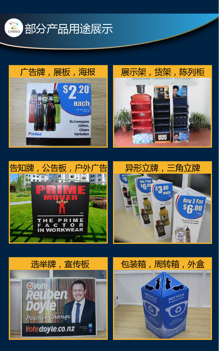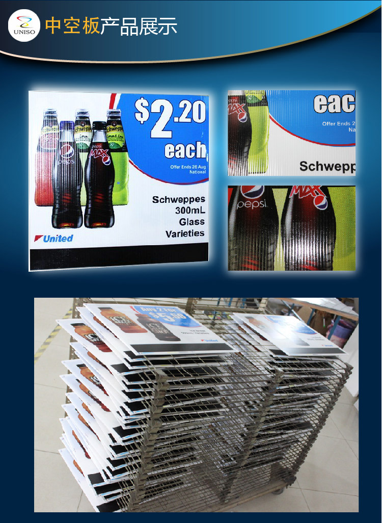 2/ 板材印刷:金属板,PS板,PP板,ABS板,PVC板,雪弗板,中空板(万通板),密度板,胶合板,KT板等。