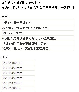 烧付铁板主要用在FPC快压上面,因为钢板和硅胶皮的原因,所以它的平整性导热缓冲性都是相当好的,而且结合的相当好。