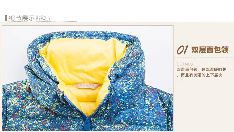 卡汶 【商场同款】冬高档纯色双层领长袖白鸭绒羽绒服女