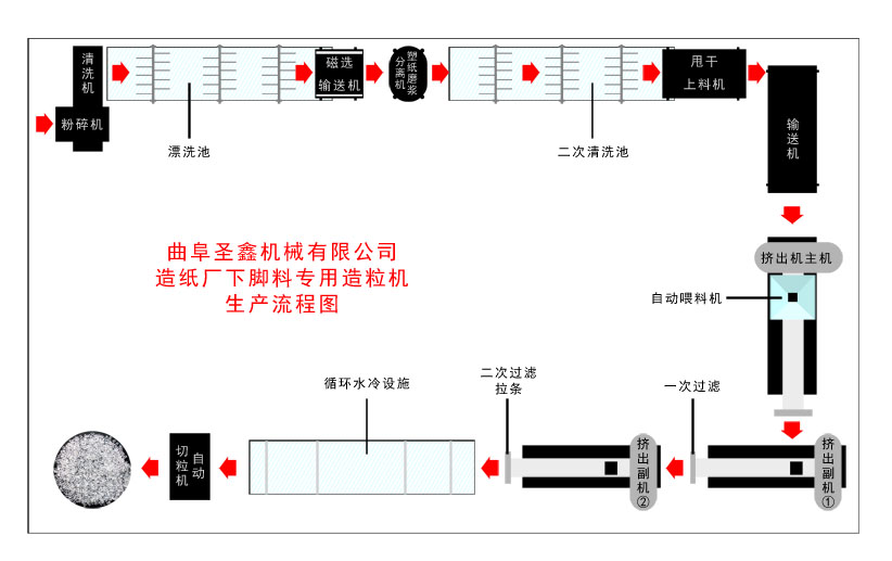 山东省曲阜市圣鑫机械有限公司针对市场需求,研制开发生产的新型、环保造纸厂下脚料专用造粒成套设备,深受广大新老客户好评。