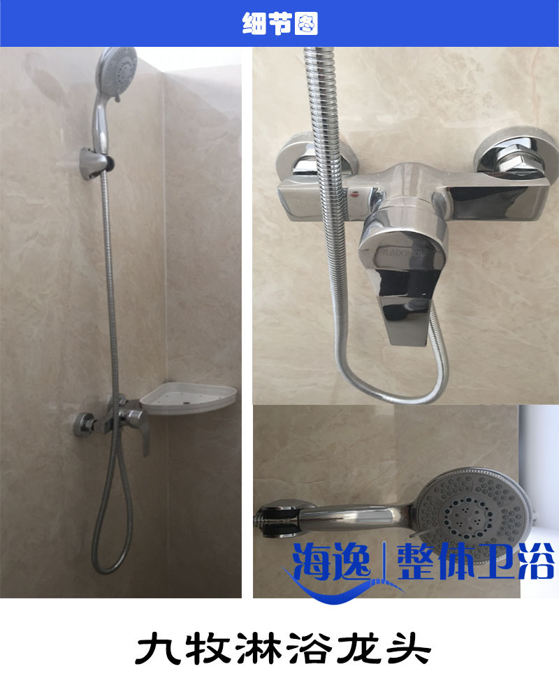 | 产品说明 | 1、规格参数 | 内部尺寸:宽1400mm×长2000mm×高2200mm 安装尺寸:宽1550mm×长2150mm×高2350mm 内部面积:2.80㎡ | | 2、主要配置 | 底盘:SMC模压成型或FRP 天花:SMC模压成型或FRP 墙板:SMC模压成型,覆膜 洗面台:立柱,SMC模压P型洗面台,新款方形盆 连体座便器 一字型浴帘,一字型玻璃隔断 面盆龙头、淋浴龙头、浴巾架、毛巾架等标准配置。 |