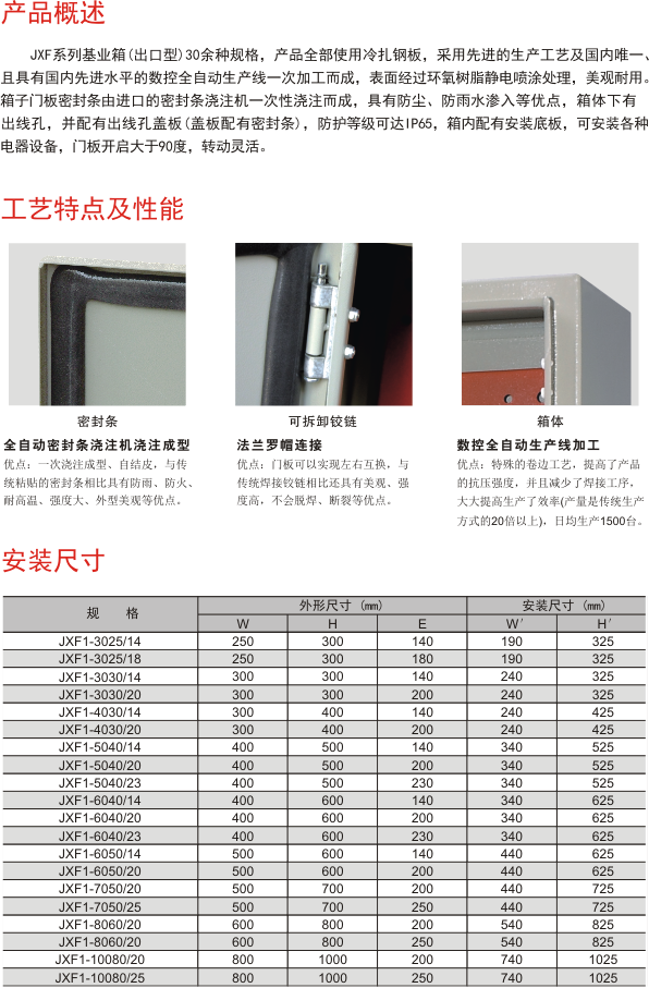公司主营:不锈钢配电箱系列、动力配电箱系列、出口型JXF基业箱系列、照明配电箱系列、通信弱电箱系列、柜架成套系列及各种特殊要求的配电系列产品。并且通过了国家强制性认证。