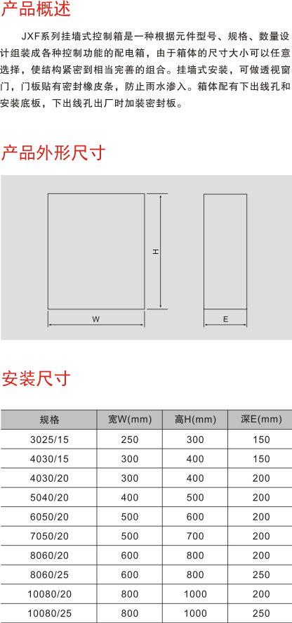 公司主营:不锈钢配电箱系列、动力配电箱系列、出口型JXF基业箱系列、照明配电箱系列、通信弱电箱系列、柜架成套系列及各种特殊要求的配电系列产品。并且通过了国家强制性认证。