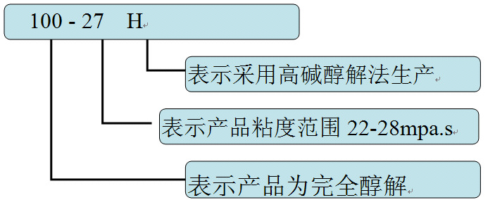 聚乙烯醇速溶胶丝产品规格代号说明: