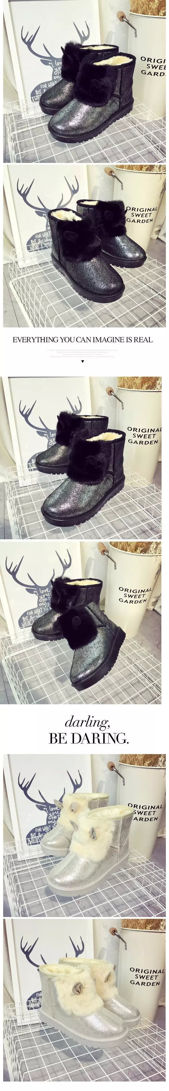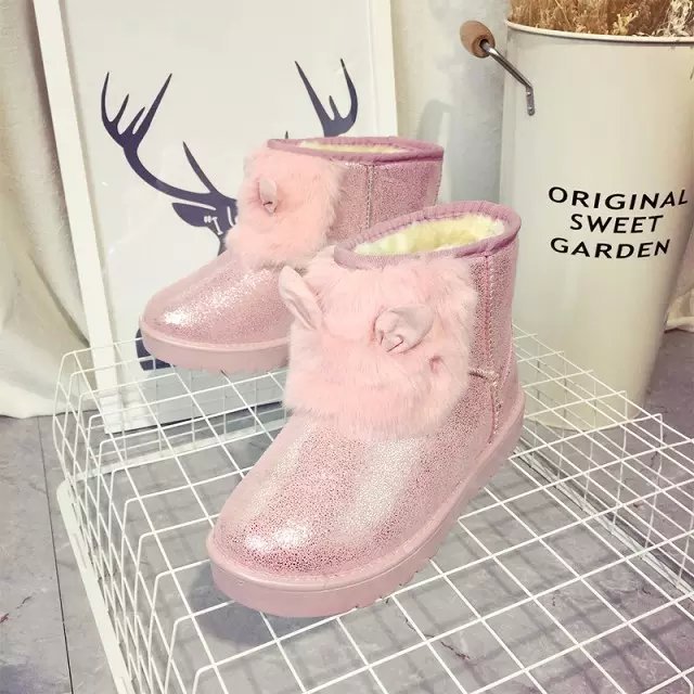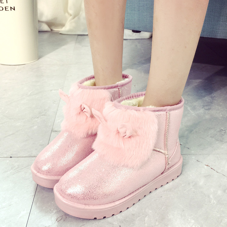 2015兔子雪地棉新款卡通可爱女生雪地靴 韩版潮鞋亮片保暖鞋