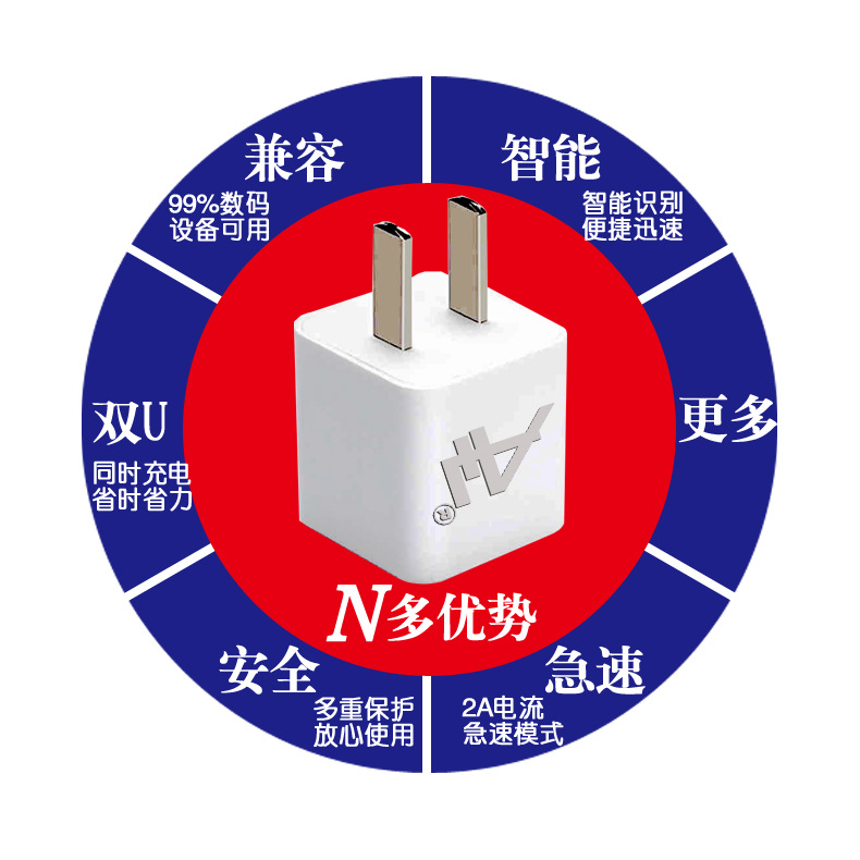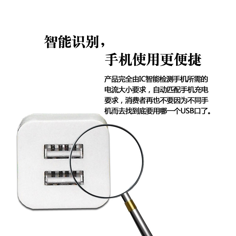 所谓智能,根据上就是自动,聪明的IC,不再为充电要找什么USB来麻烦了! 节能,也是一种负责任的态度!更是一种境界!环保是一种格调也是一种态度! 极速的双USB输出,让你体会秒充的乐趣! 闪电充在手,充电无忧!
