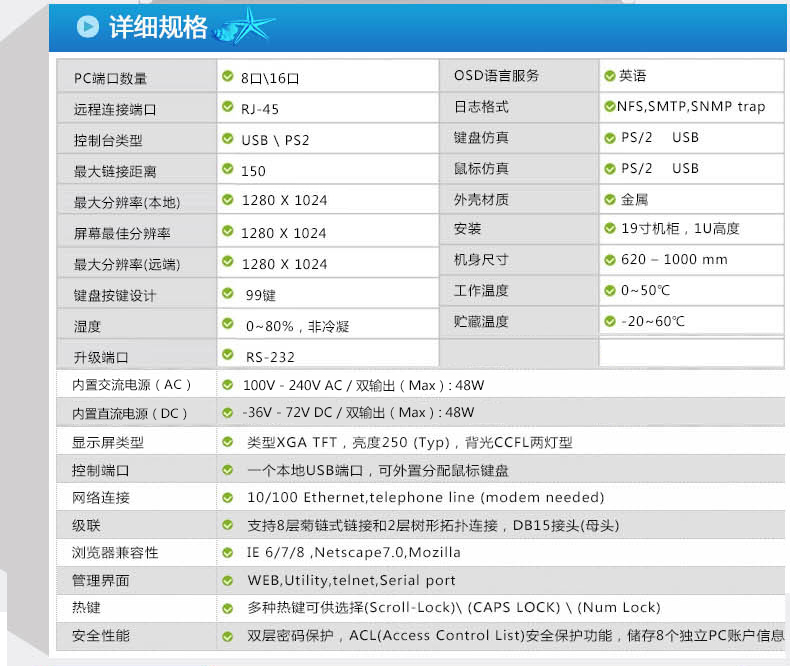 大唐保镖HL-8016 16口 数字KVM切换器 双通道 RJ45远程