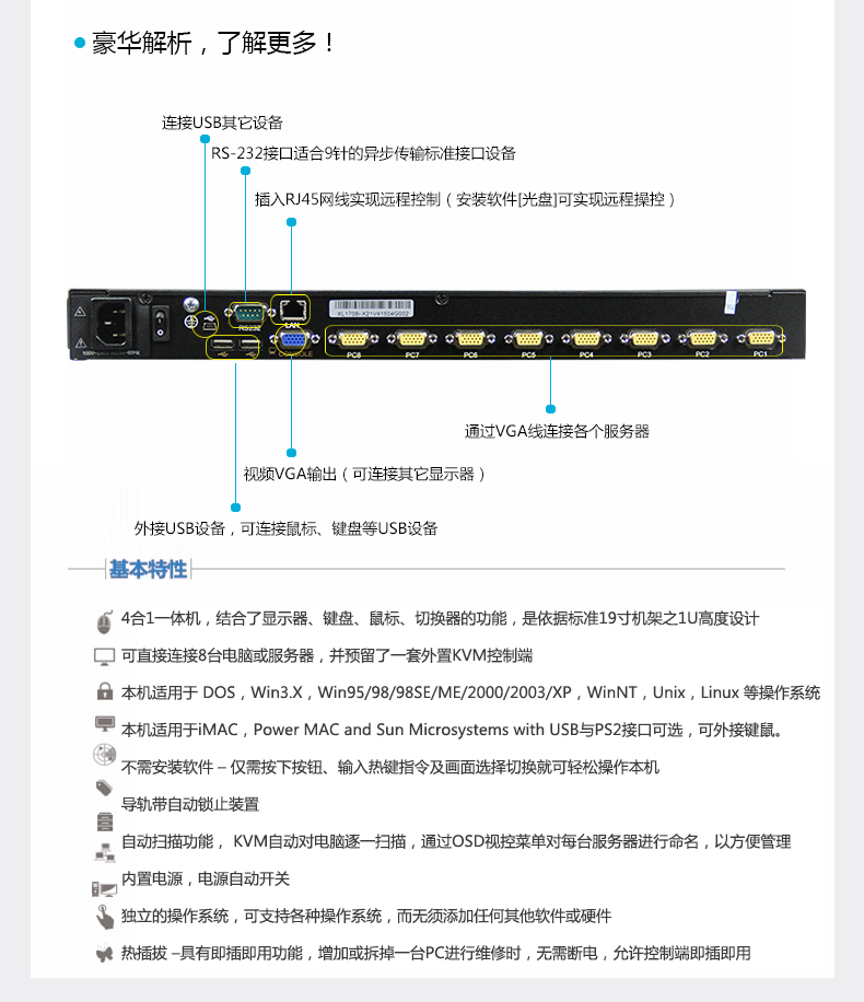 大唐保镖HL-1708KVM切换器17寸8口机架式KVM切换器
