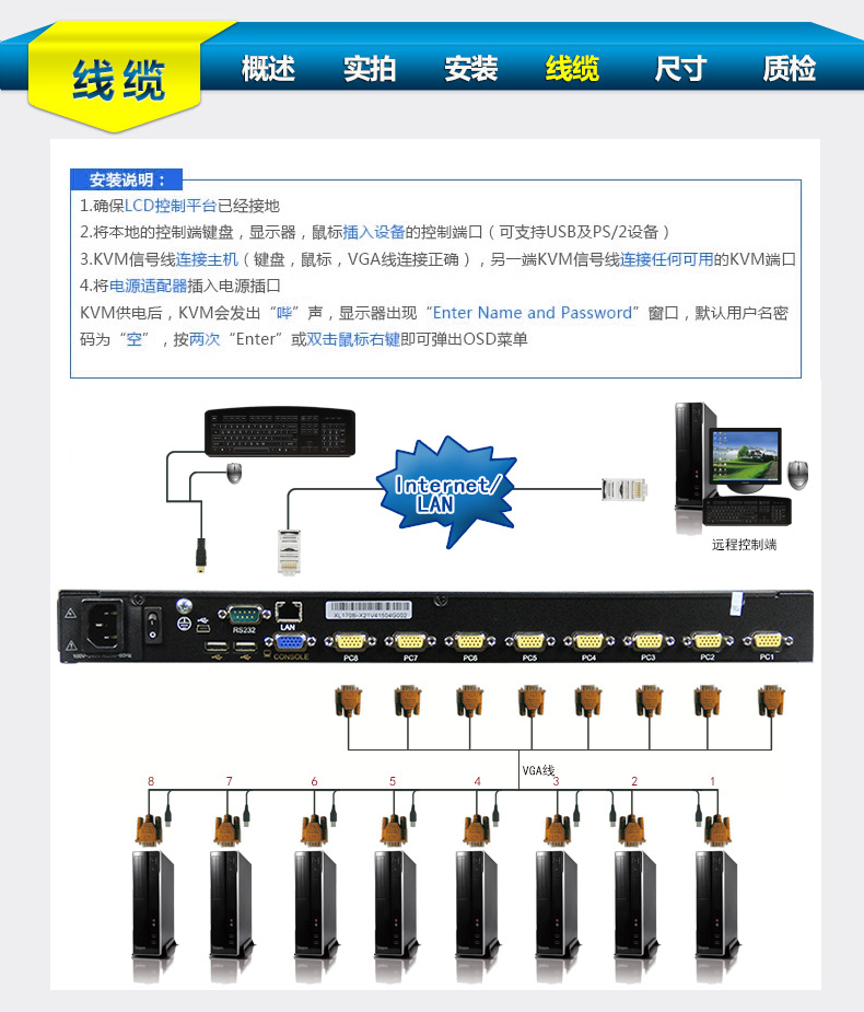 大唐保镖 HL-6708 远程 ip kvm kvm 切换器 8 口 17寸KVM