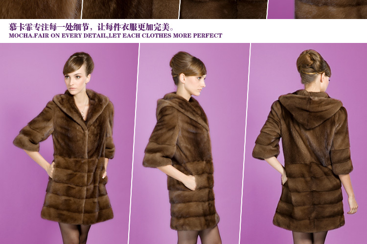 丹巴拉 水貂皮草外套 进口整貂皮 女装 裘皮大衣 连帽款 521