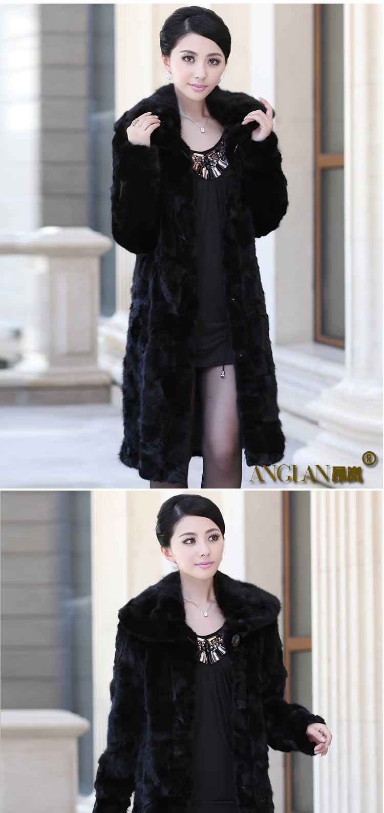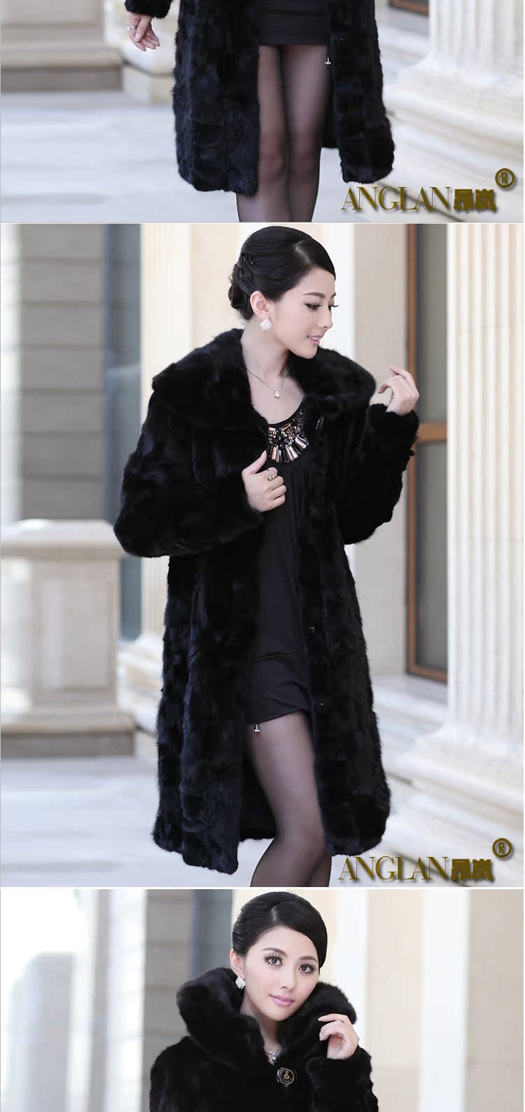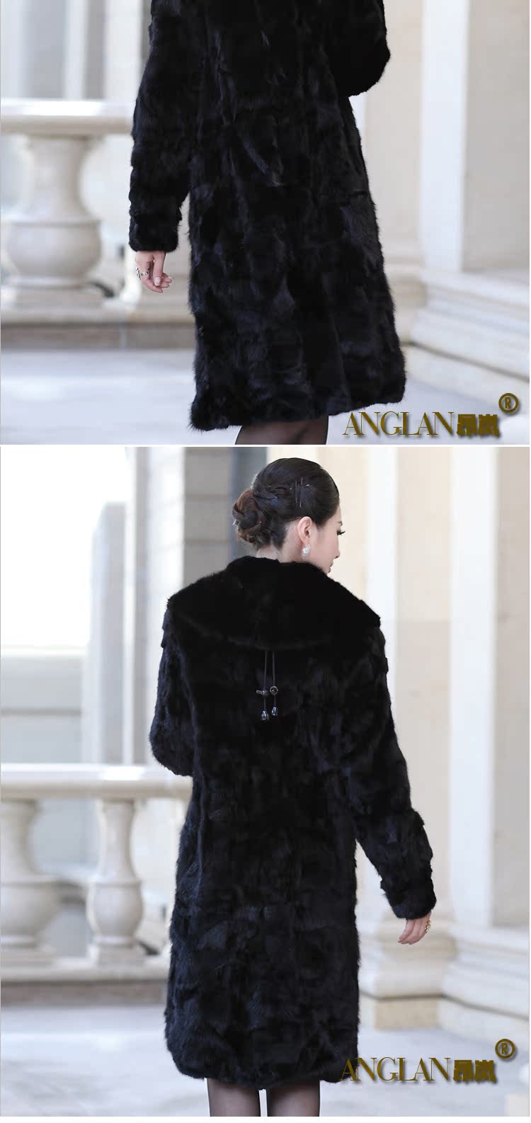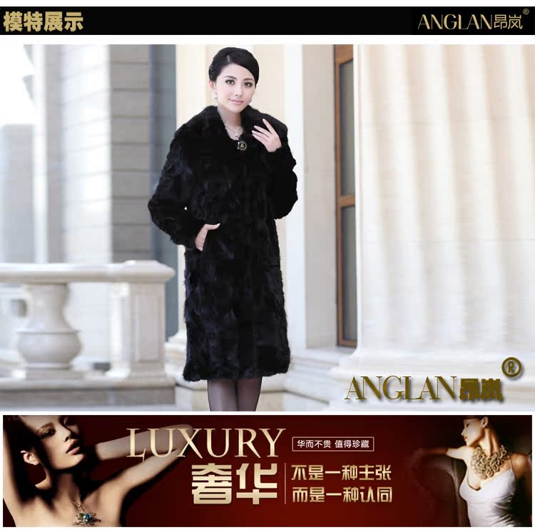 昂岚 新款2013海宁皮草女款貂皮大衣长款水貂拼貂外套