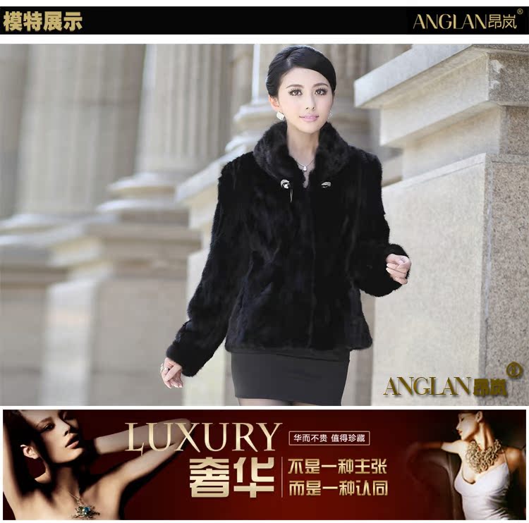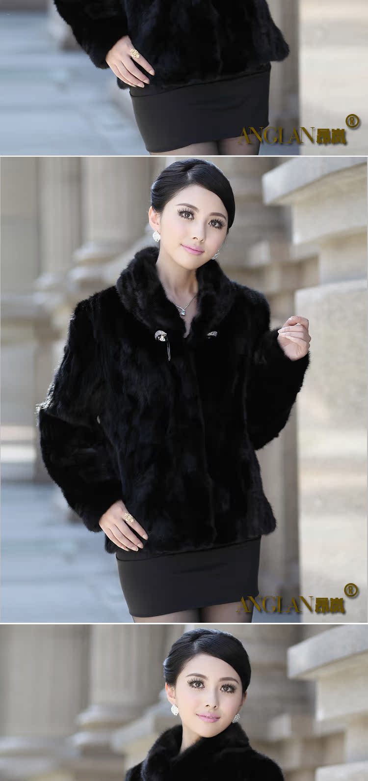 昂岚 新款2013海宁皮草女款貂皮大衣常规款水貂拼貂外套
