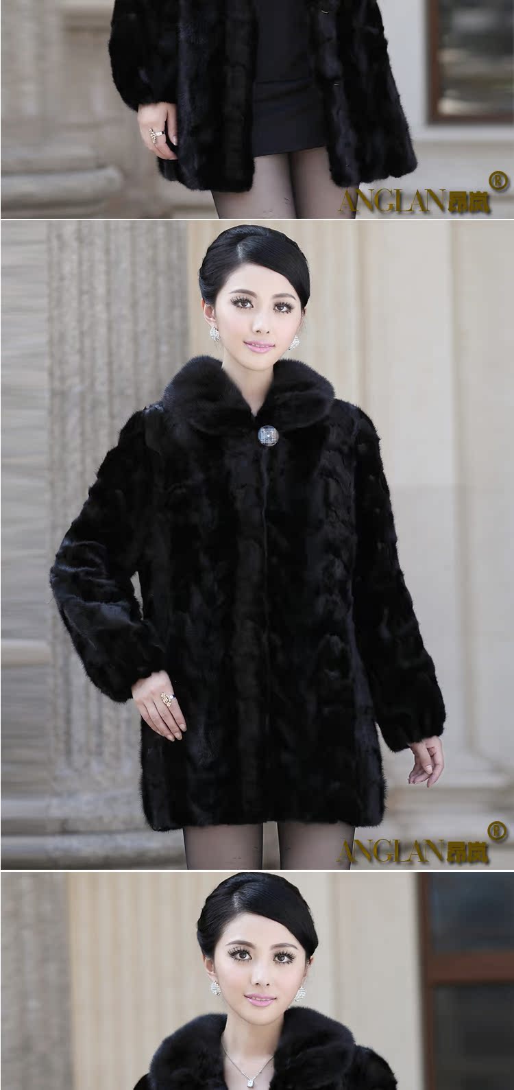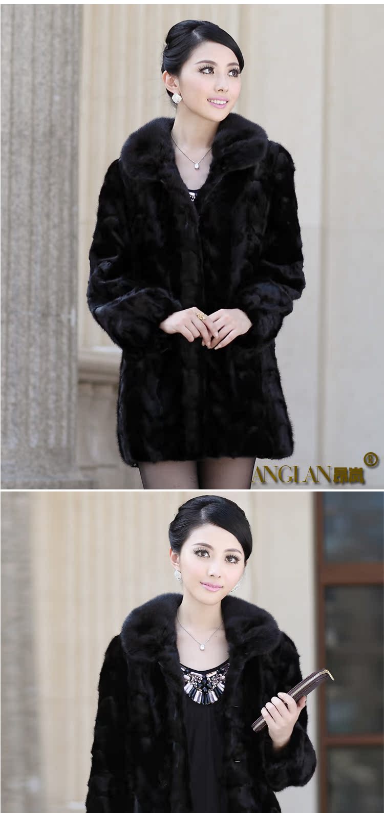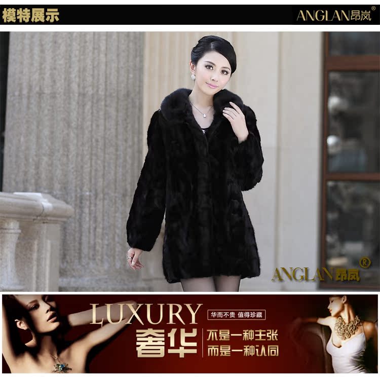 昂岚皮草外套新款2013水貂皮大衣 长款超大毛领 特价