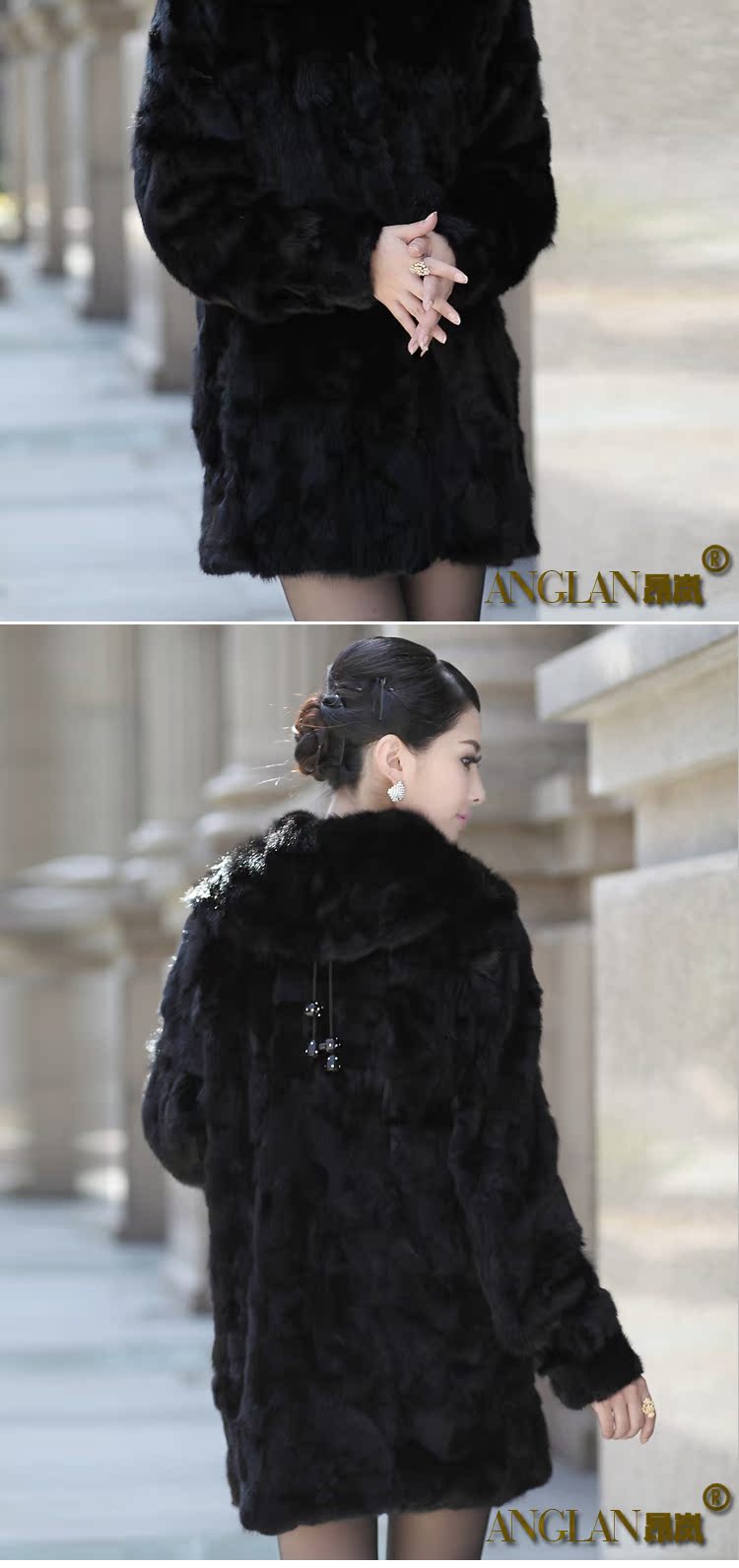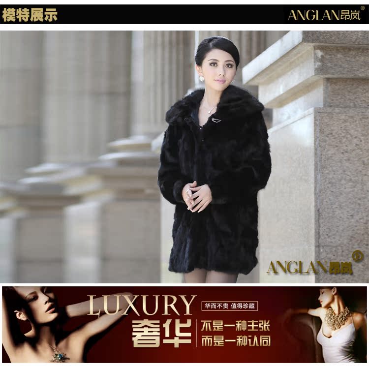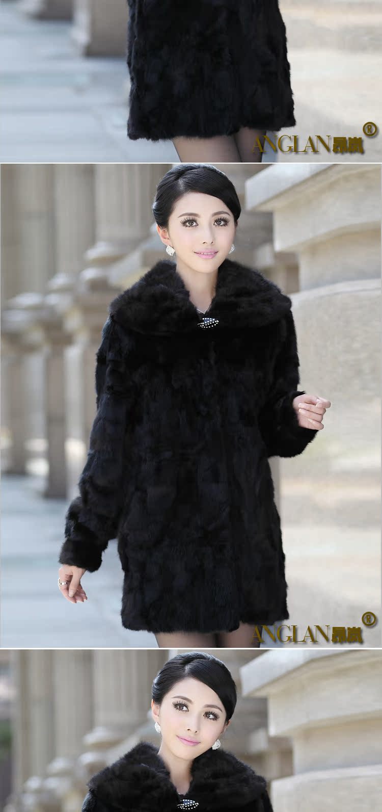 昂岚 新款2013皮草女款貂皮大衣长款水貂拼貂外套