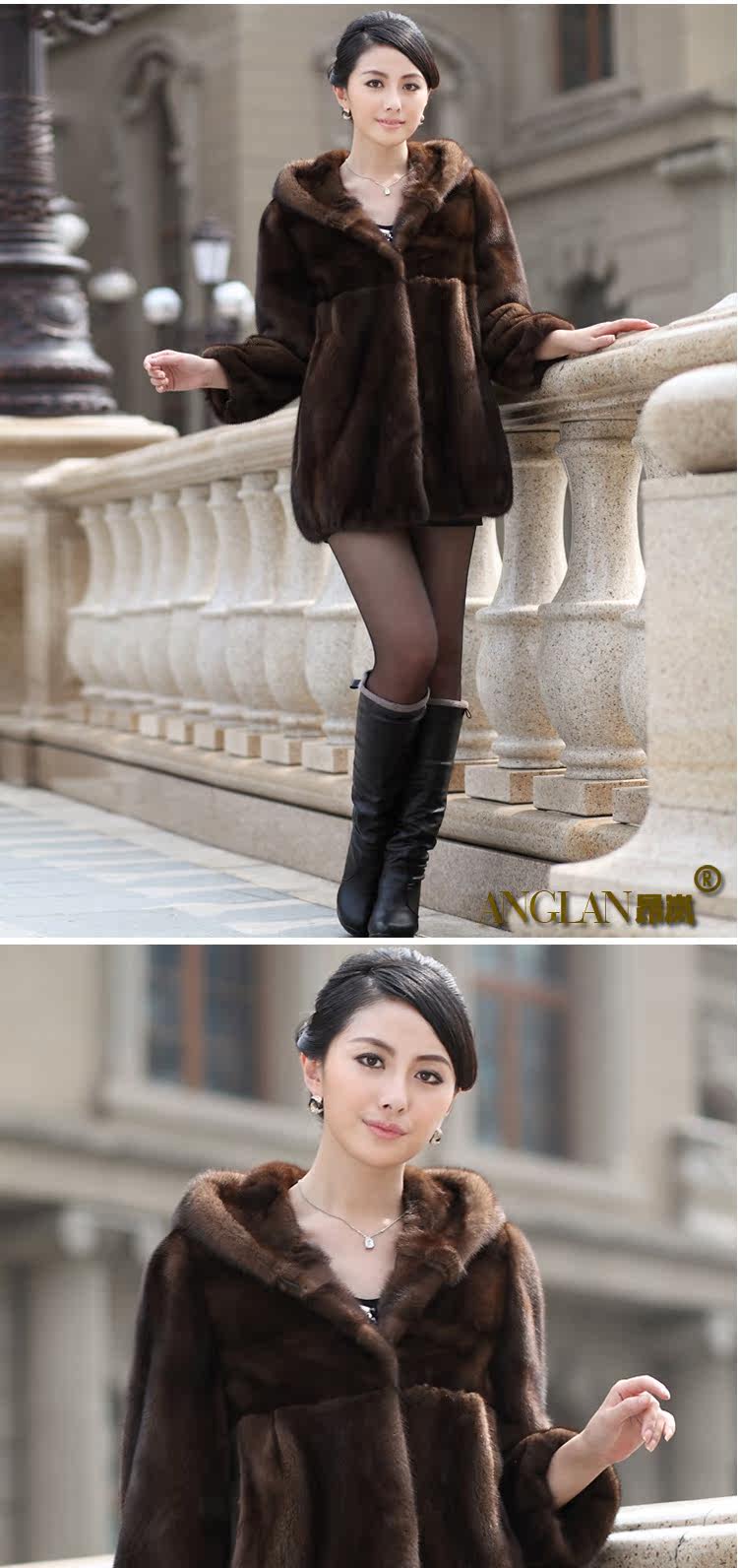 丹巴拉 水貂皮草外套 进口整貂皮 女装 裘皮大衣 连帽款 521