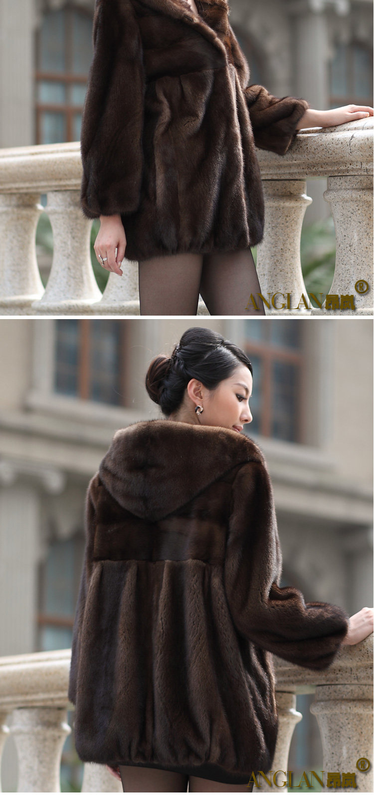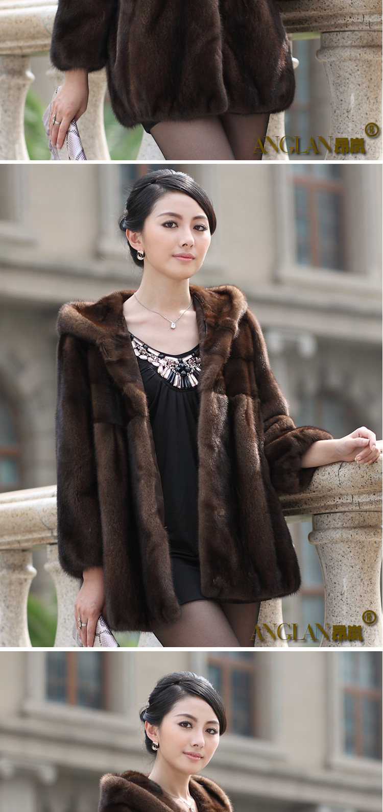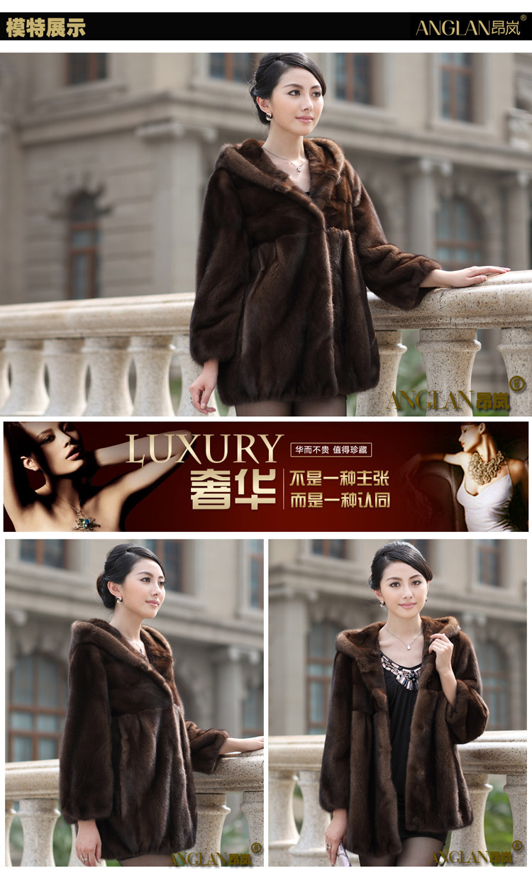 丹巴拉 水貂皮草外套 整貂皮 连帽款 休闲女装 裘皮大衣 617