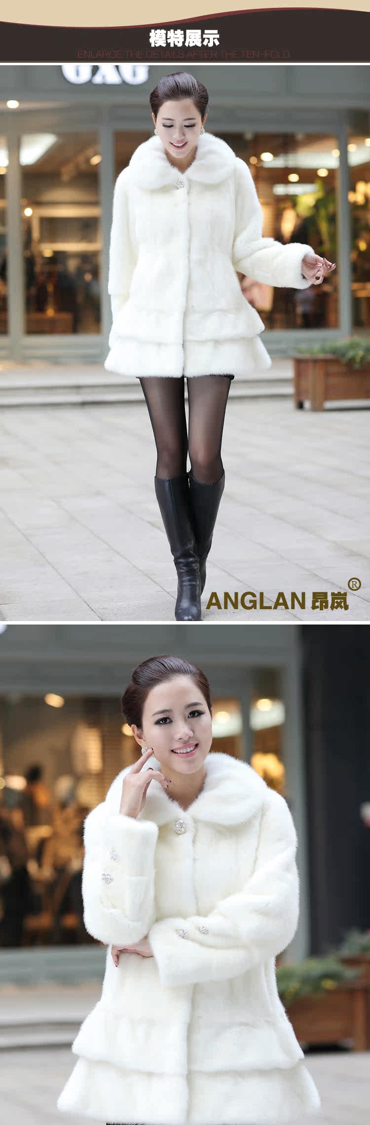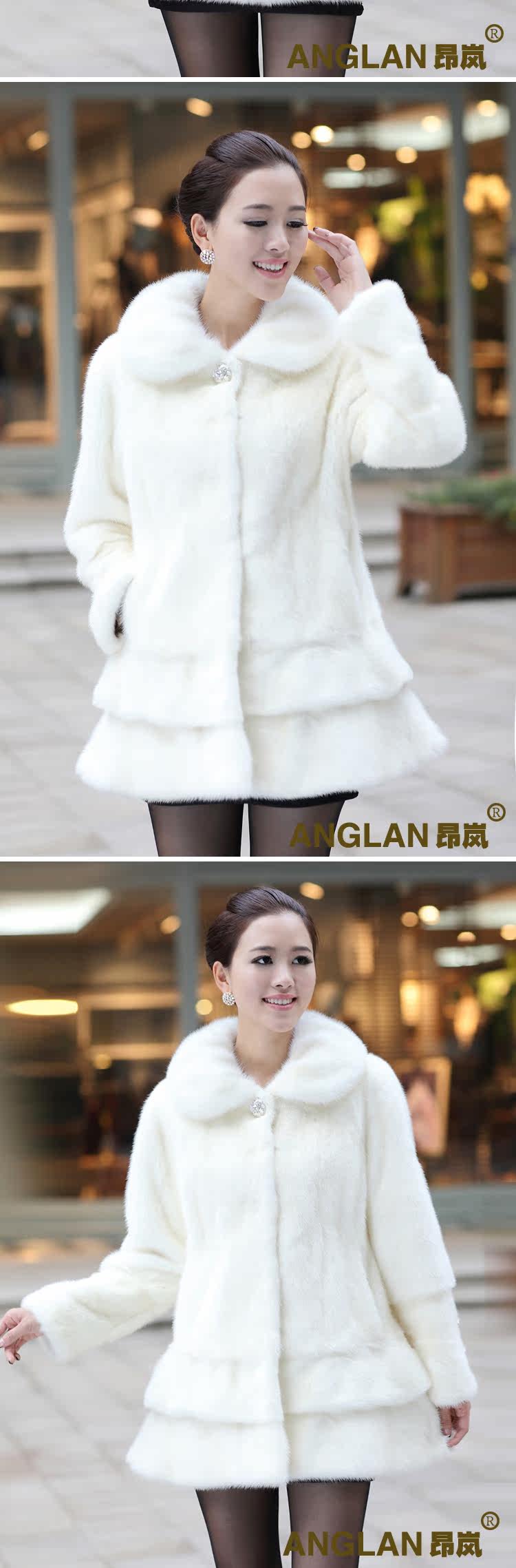 昂岚 2013新款白色 貂皮大衣 整貂皮 特价水貂 皮草外套