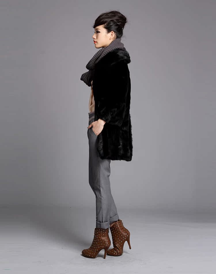 线条简约能够最大限度的呈现水貂本身的柔滑质地,然而本款的水貂原料的优质,能够极为明显的展现,上身之后所带来的是享受不尽舒适感