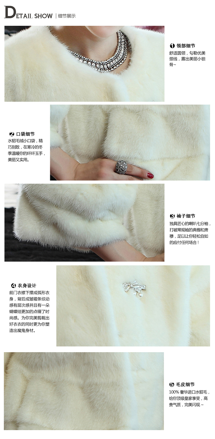 丹巴拉 2012新款 水貂皮草外套 进口本色白貂 整貂 裘皮大衣