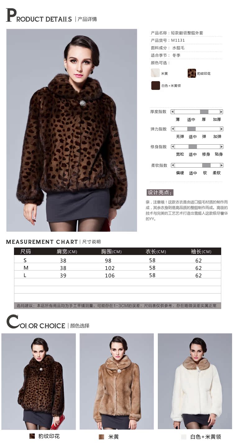 雪姬人豹纹女款貂皮大衣 水貂皮草外套2013新款特价整貂皮