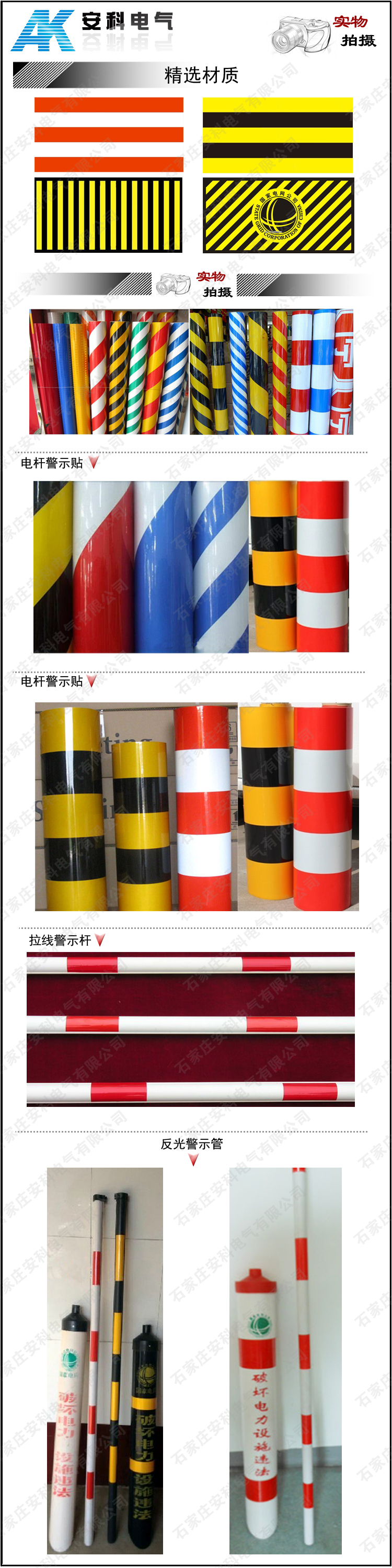 电线杆反光贴简介:采用进口反光膜专业制作而成。电线杆防撞警示贴主要适用于各类电力、电信、广电及交通部门的水泥电线杆、木杆及钢杆的防撞警示之用,为广大的电力、电信、广电用户的电线杆防撞警示带来了方便,是传统的喷刷反光漆的理想替代方案,自推出以来深受用户的好评。产品克服了长期以来水泥电线杆及要杆表面只能喷刷反光漆而不能覆反光膜的缺陷,可适用于各类电力、电信、广电部门的水泥电线杆、木杆、钢杆的表面粘贴,以起到防撞警示的作用,极大地减少断电、断线事故及生命财产损失。