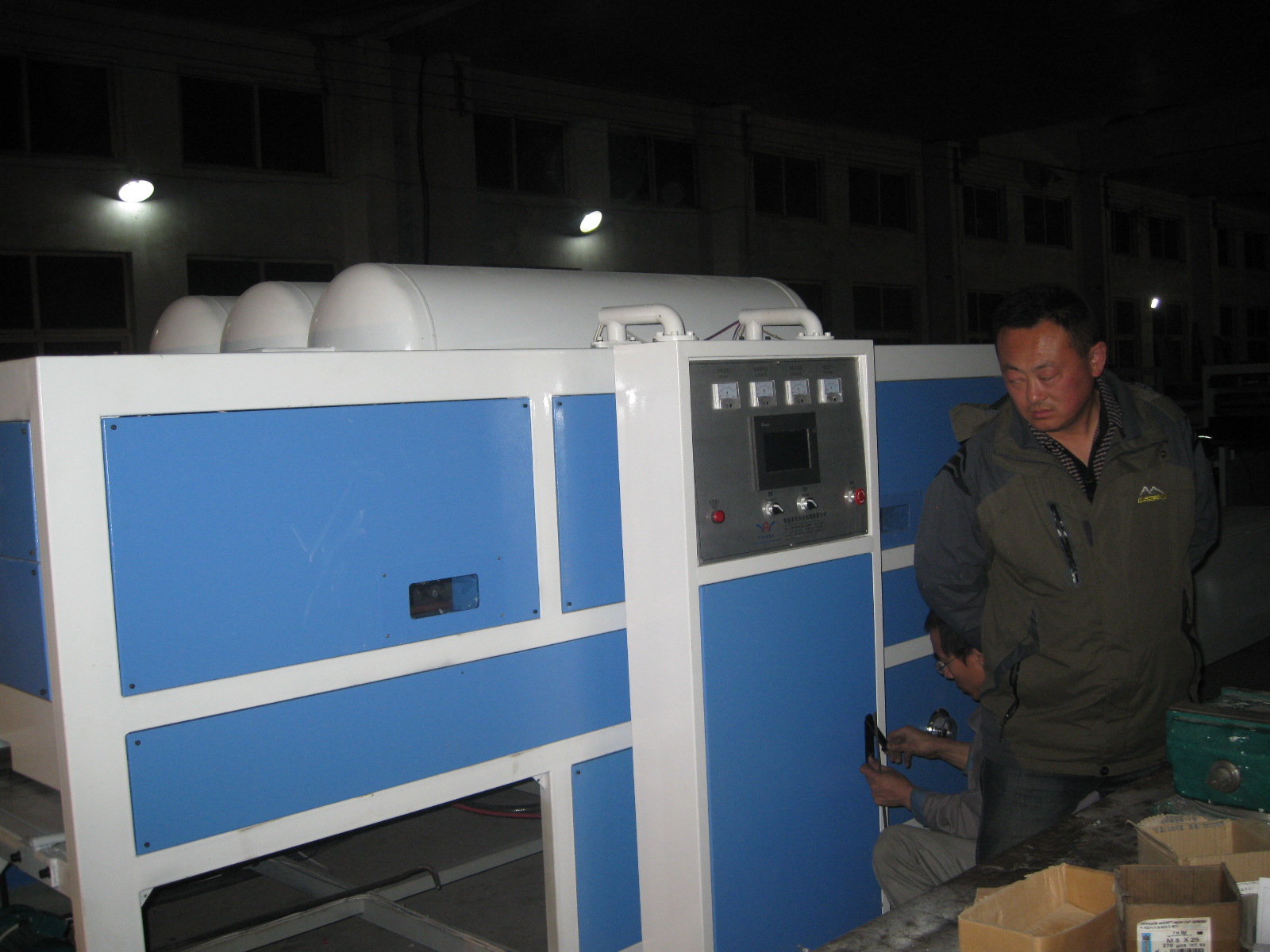 工作台尺寸 Working Table Size 极限真空度 Limit Vacuum Degree 实际耗电量 Actual Electricity Consumption 总功率 Total power 外形尺寸 Overall size 总重量 Total Weight | 2360*1150*60mm*2 -0.1Mpa 4.5kw 14.5kw 6000*1750*1400mm 2000kg |