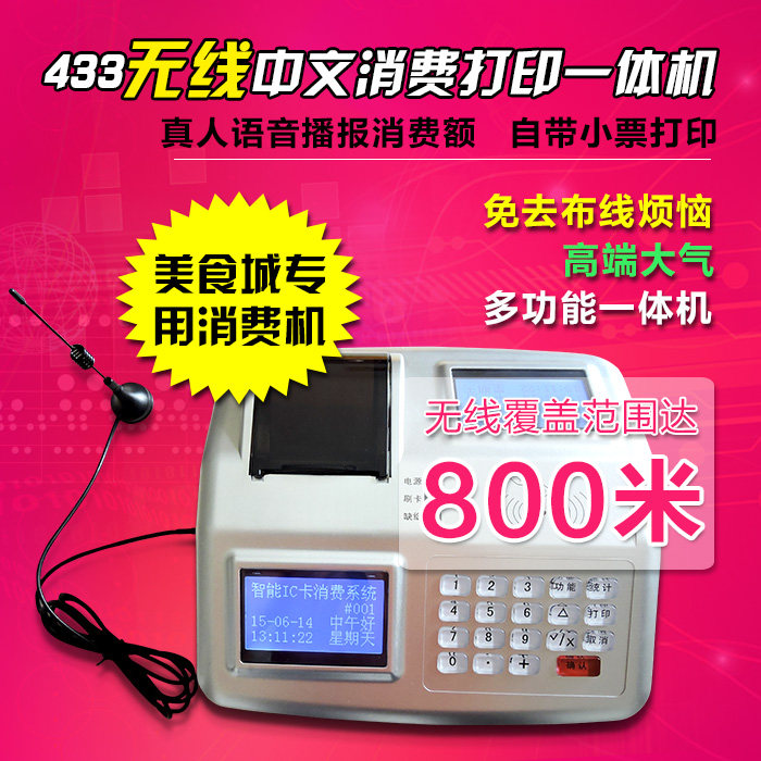 433MHZ是我们国家的免费申请发射接收频率,可直接使用不需要管理,433频段抗干扰强,并支持各种点对点,一点对多点的无线数据通讯方式,具有收发一体、安全隔离、安装隔离、使用简单、性价比高、稳定可靠的特点。通过我们多方面检测并实践,只要发射功率足够大,无障碍传输距离可以达到1000米,有建筑物,墙这些障碍物传输距离可以达到400米。433 MHz无线消费机方案,主要通过433频段内的频率进行传输数据,在电脑端安装一个433接收器,在每台消费机里面嵌入433接收器模块,实现一点对多点的方式传输数据。在短距离、小范围内,每一笔刷卡数据,都可以通过433无线方式实时传输到电脑软件里面。