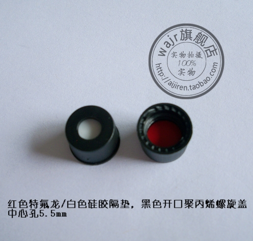 SC8281: 红色特氟龙/白色硅胶隔垫,黑色开口聚丙烯螺旋盖 中心孔5.5mm