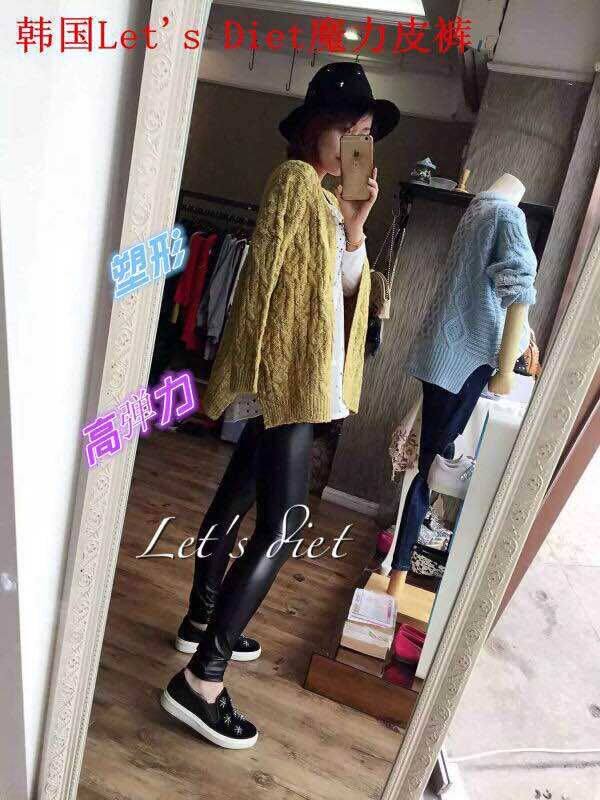 这不是国内的掉皮的皮革裤 ,也不是市场上的布料裤,这是韩国Let's diet独家魔力皮裤!韩国正品带有双重防伪!