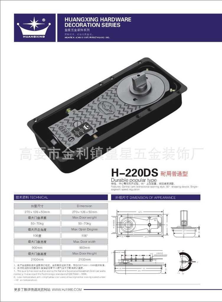 ·内置减压阀,防止因外来强压或强风状态下闭门而造成的地弹簧损坏或漏油。