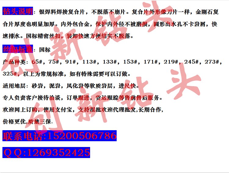 地质勘探、建设施工 衡阳创新钻头 不取芯钻头 快速钻头 花岗岩