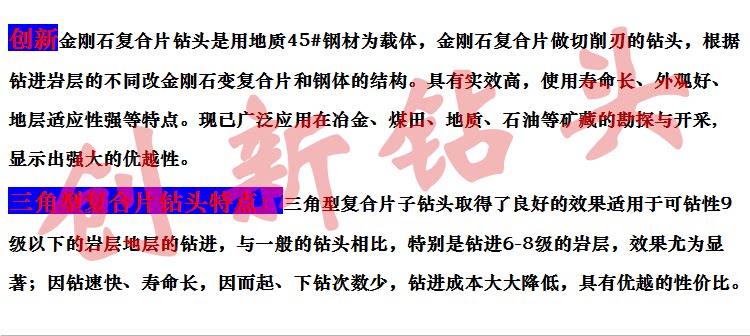 地质勘探钻头pdc钻头 金刚石复合片-纯银焊接 三角型快速钻头