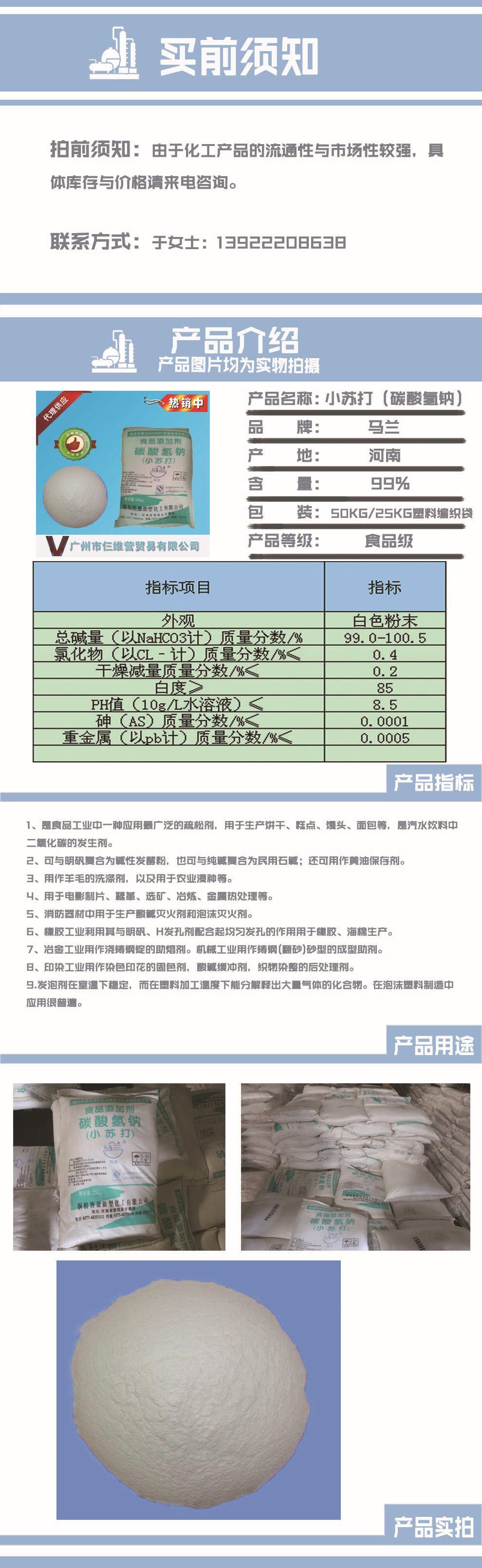 纯碱(碳酸钠)、硫化碱、磷酸三钠、硫脲、一水柠檬酸、小苏打(碳酸氢钠)、氯化铵、硫酸铵等无机化工产品,现与英德彩环纳米科技合作一手代理彩环牌沉淀硫酸钡、立德粉、耐晒白、耐晒红等填充料。公司秉承薄利多销,诚信经营的理念,为商家提供优质的产品与服务。为您提供优质小苏打价格、优惠碳酸氢钠价格!详情请咨询于小姐:13922208638
