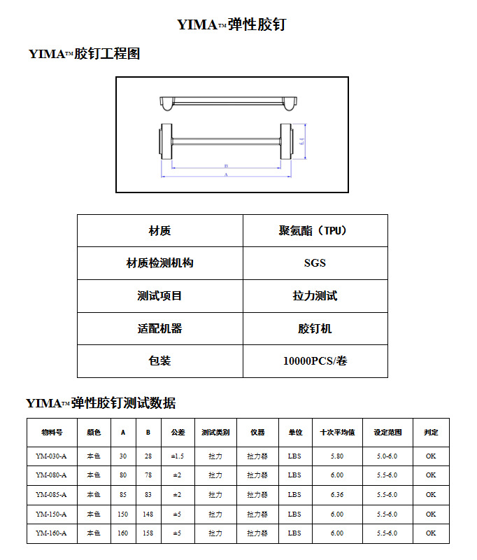 【产品使用说明】YIMA弹性胶钉适用于玩具,小五金产品,厨房用具,珠宝首饰,袜子纺织品等产品的包装固定。高效集成,安全环保。