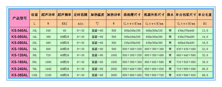 产品特点:1.清洗槽工业级2.0厚不锈钢焊接,寿命大大延长;2.超声波功率无级可调;3.时间设定: 0-30 分钟数码显示可调;4.温度设定: 0- 80℃数码显示可调;5.产品材质:内胆、外壳均采用优质不锈钢;6.排水系统:所有机型均安装G1"大口径排水球阀; 产品规格: