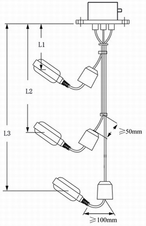 注:请将电缆线直接接到控制箱,尽量避免使用中间接头,若不得已有接头时,绝对不可将电缆线接头浸入水中。