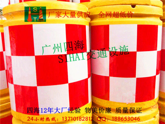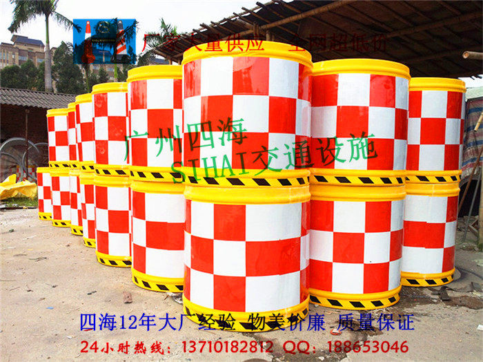 1. 广州四海交通防撞桶中空灌沙或加水,具有缓冲弹性,能有效吸收强大撞击力,降低交通事故程度;组合使用,整体承受力更强,更加稳固