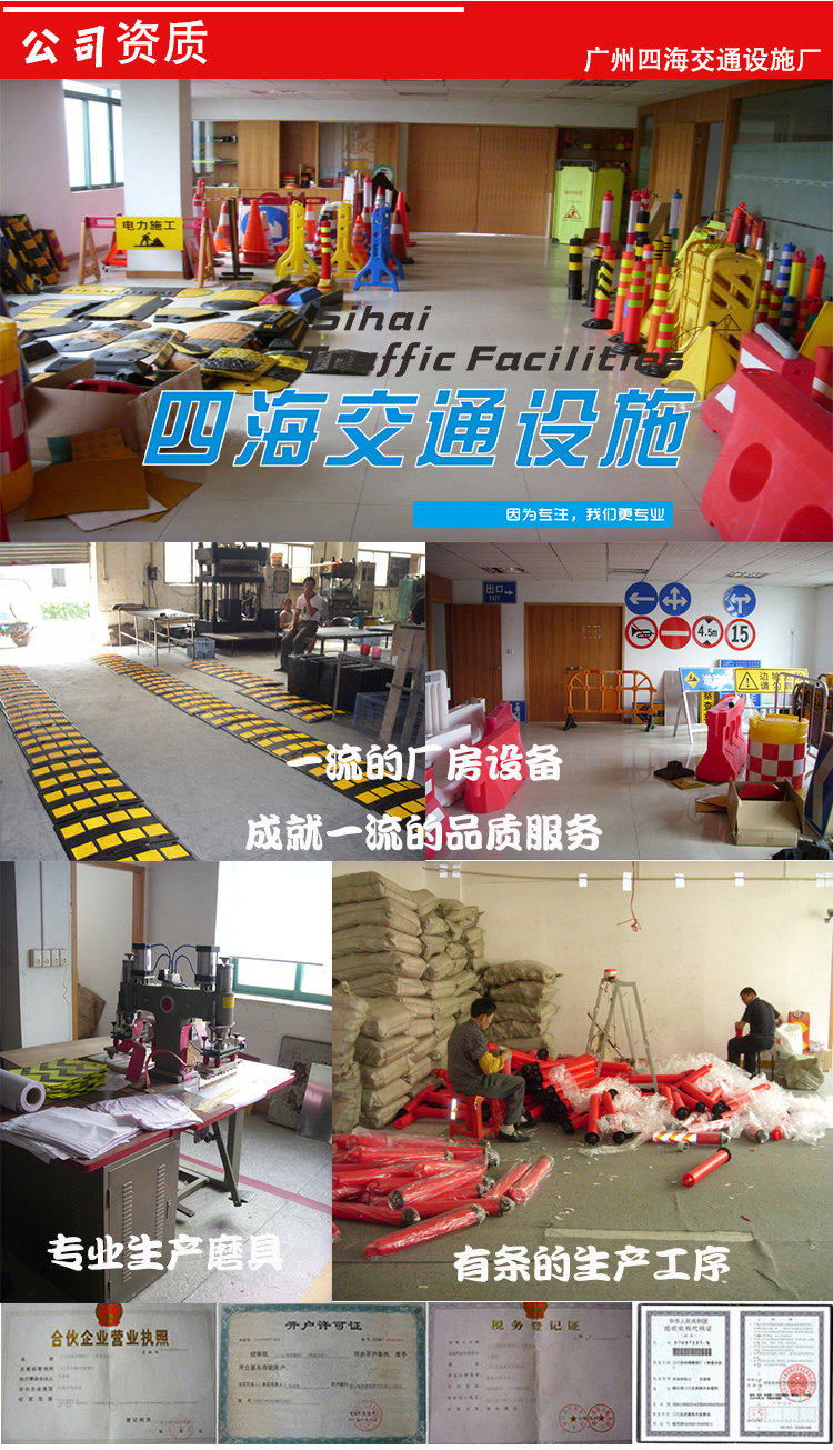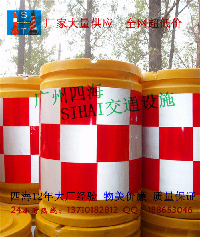 广州市四海交通以其优良的防撞桶、反光防撞桶、反光桶、沙桶、高速公路防撞桶、公路反光桶、小区反光桶、路口防撞桶、道路防撞桶、警示标志高品质和服务,可靠保证阁下交通管理的秩序与安全。