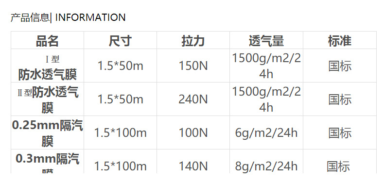 1.2建筑透汽性。由于室内外温差的存在,建筑围护结构内部的结露是难以避免的。但实际上,只有当围护结构一直处于潮湿的状态时,才会引发潮气问题,导致对建筑能耗、耐久性及舒适性的不利影响(如前所述)。因此,为了避免问题的发生,保证建筑的透汽性,使其可以通过将水汽扩散到室外的形式达到自然干燥,则显得尤为重要。综上所述,建筑的能耗、耐久性、舒适性与其围护结构的气密性、水密性及透汽性密切相关,而防水透汽膜技术正是通过对上述因素的控制来达到节约能耗、保护人居环境、提高建筑耐久性的目的。同时,配合空气层的使用,可更有效的保证维护结构(外墙及屋面)的干燥,并起到显著的隔热效果。