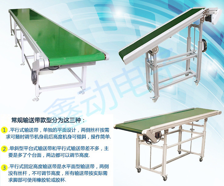 5动力:马达根据机身承重量配置,调速器也可选择不同功率,皮带速度可调;