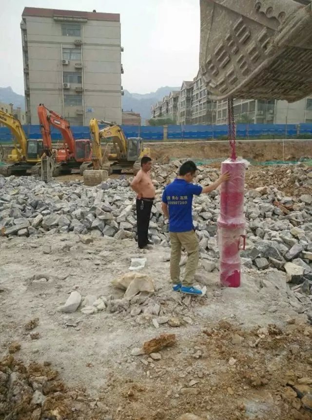 (孔深要求为:劈裂器前端劈块长度+300mm以上,例如:劈块长250mm,那么必须钻550mm深以上的孔方可使用劈裂机)