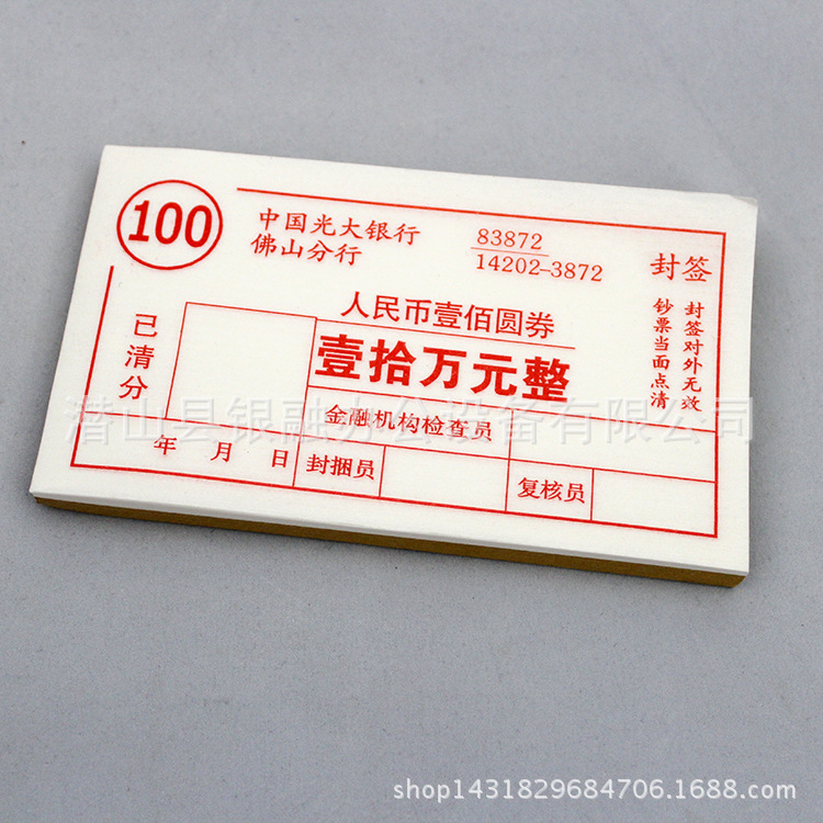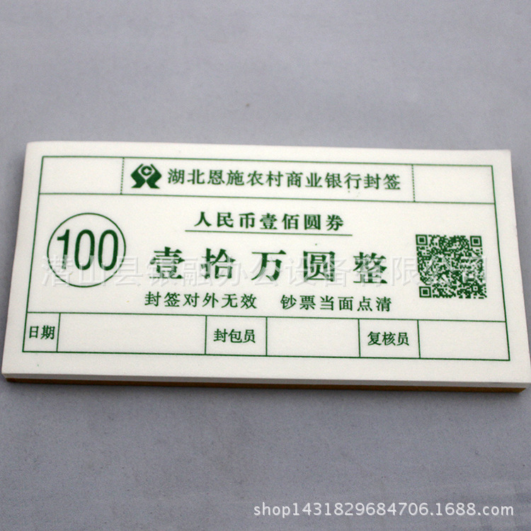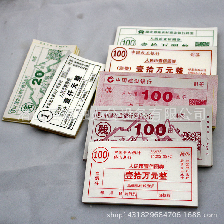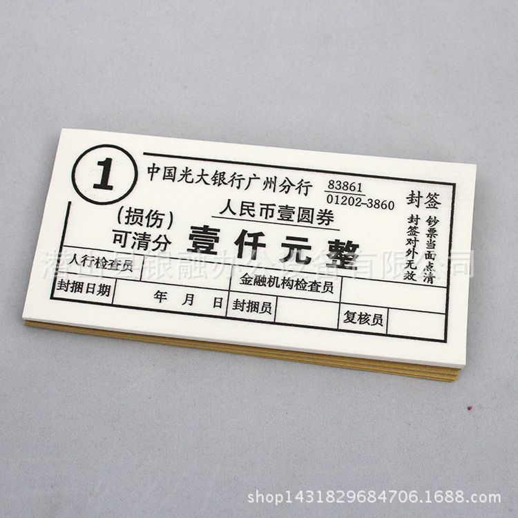 纸质柔软,粘贴方便,盖印清晰,捆扎不破损,粘贴后不易揭封,更好的起到封签效果;垫纸为80克木浆牛皮纸(或白色双胶纸);是中国人民银行指定产品。